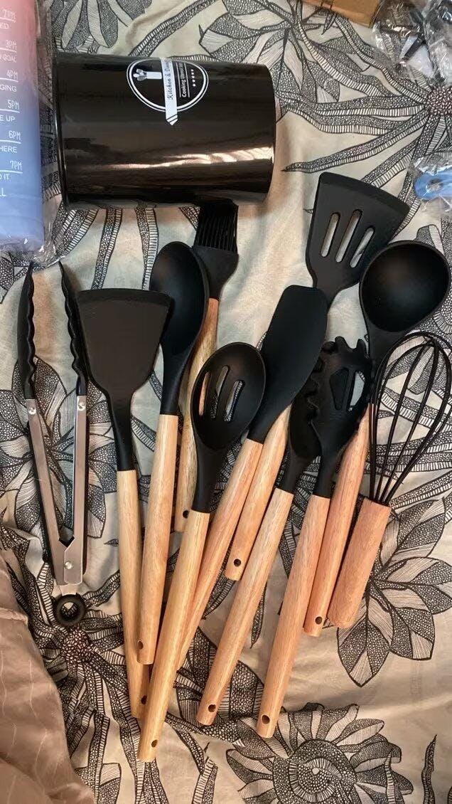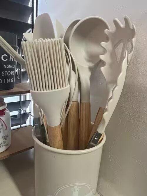 天然木丸型ハンドル シリコンキッチンツール 14点セット