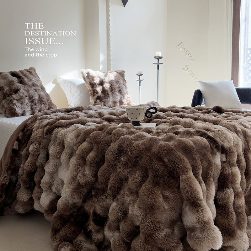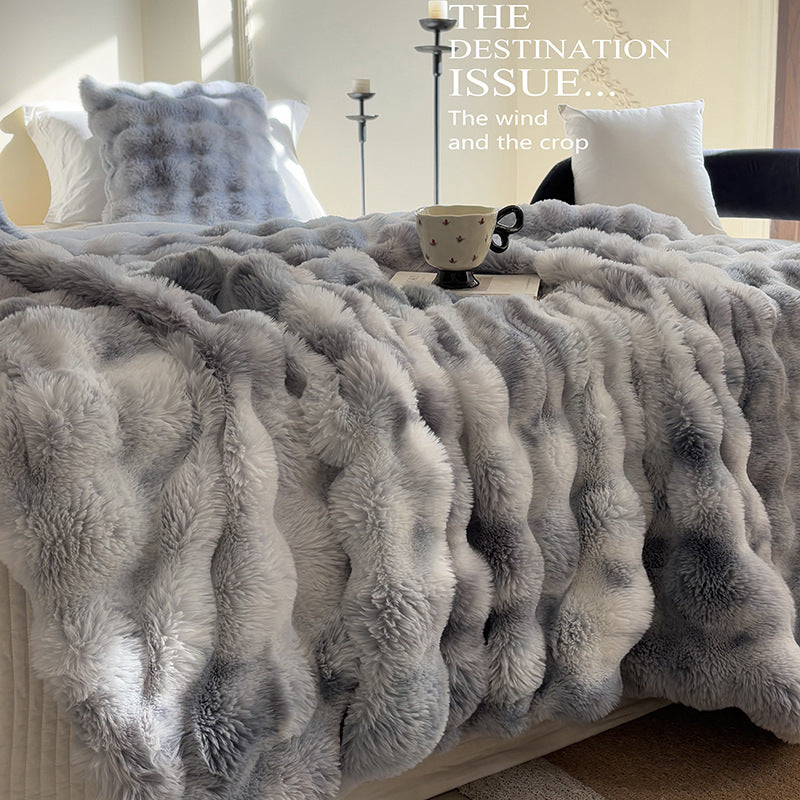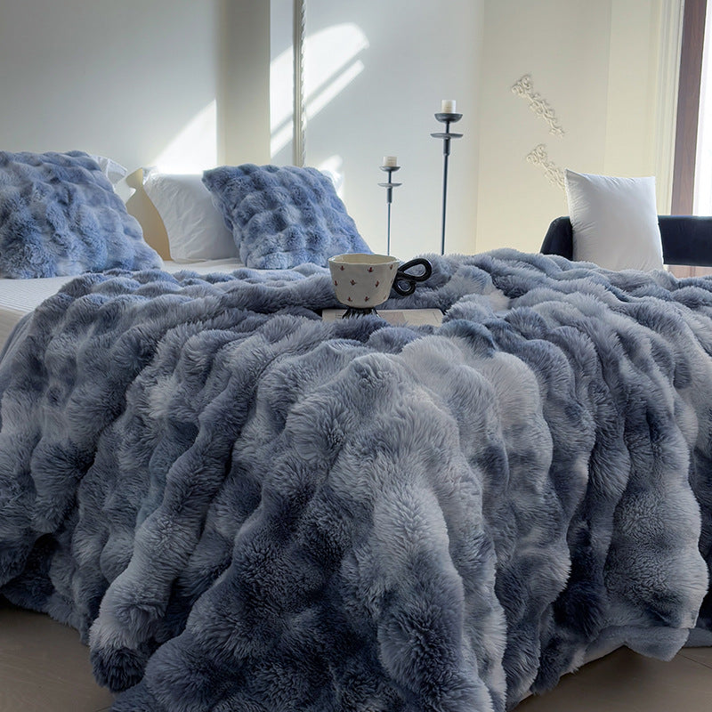 Hoshina™ タイダイラビットファー調 ふわとろブランケット